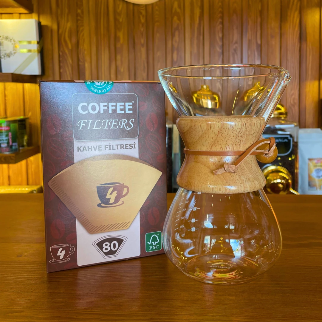Kahve Filtresi ve Chemex Ahşap Boyunlu Kahve Sürahisi
